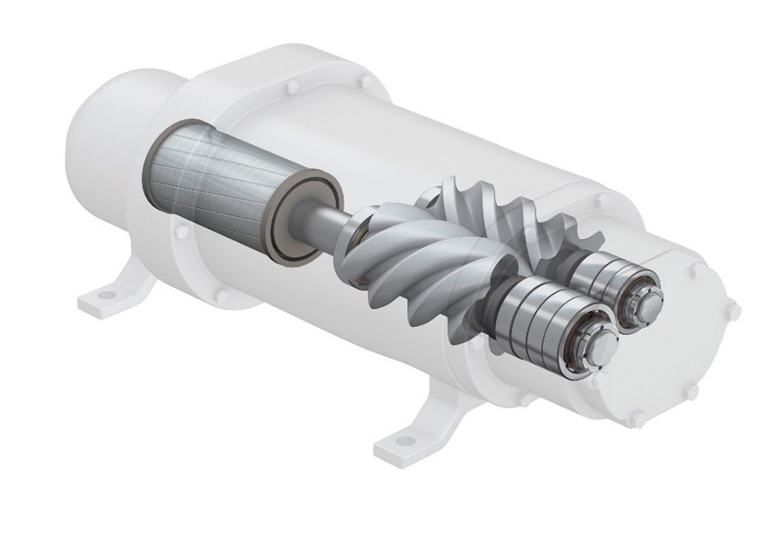 Máy bơm trục vít chân không, giống như máy nén trục vít đôi, hoạt động với hai trục vít chia lưới quay ngược chiều nhau. Khí này bị giữ lại giữa các vít và vận chuyển nó đến phía xả, trong khi ở phía đầu vào, khí được loại bỏ và áp suất được giảm đến mức chân không dự định. Vòng bi đỡ trục quay trục vít là thành phần quan trọng: chúng hỗ trợ tải trọng do áp suất khí tạo ra và cung cấp vị trí trục hướng tâm và trục chính xác, đây là tiêu chí quan trọng cho hiệu quả của máy trục vít.