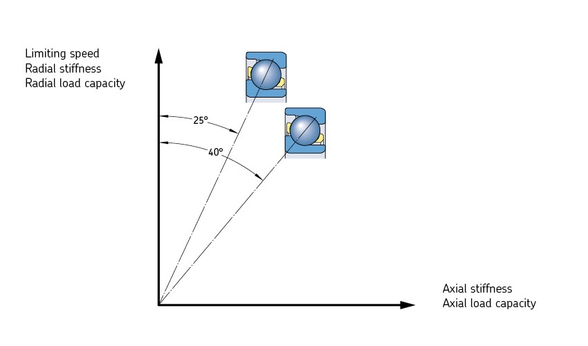 Một biến thể góc tiếp xúc 25 ° đã được thêm vào phạm vi vòng bi tiếp xúc góc tiêu chuẩn