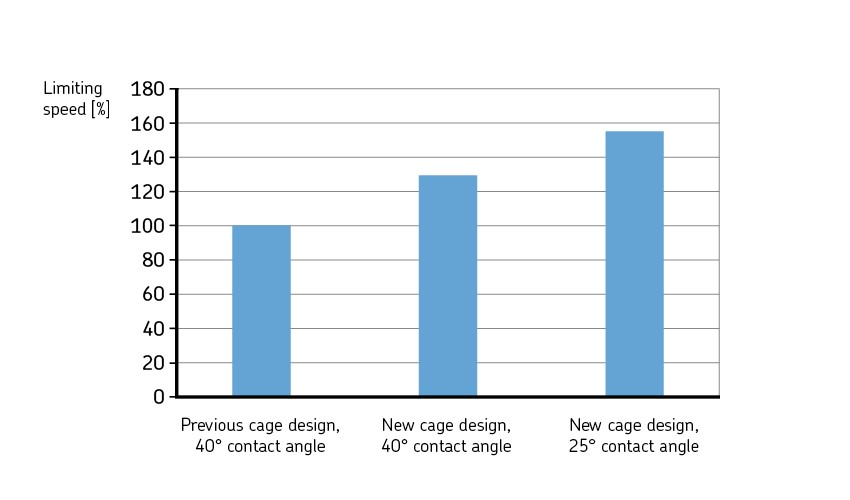 Ngoài ra, SKF đã bổ sung một biến thể góc tiếp xúc 25 ° cho phạm vi ổ bi tiếp xúc góc tiêu chuẩn. Cả hai thiết kế ổ trục đều bao gồm thiết kế lồng cải tiến mới. So với biến thể góc tiếp xúc 40 °, góc tiếp xúc nhỏ hơn 25 ° cho phép ổ trục hoạt động ở tốc độ cao hơn đồng thời hoạt động tốt hơn như một ổ trục dự phòng dưới tải trọng nhẹ. Vòng bi 25 ° cũng cung cấp khả năng chịu tải xuyên tâm cao hơn so với vòng bi 40 °, ví dụ, có thể được sử dụng để giảm kích thước máy trong các trường hợp cụ thể. Ưu đãi như một thiết kế catalogue tiêu chuẩn cũng đảm bảo tính khả dụng trên toàn cầu với thời gian giao hàng ngắn.