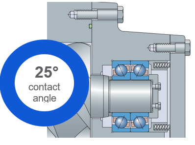 Một ưu điểm chính khác của dòng 25 ° này là những vòng bi này có thể kết hợp được với các vòng bi 25 ° và 40 ° khác, có nghĩa là chúng có thể được ghép lại với nhau theo cách sắp xếp song công hoặc ba chiều mà không cần bất kỳ thao tác đo lường nào.