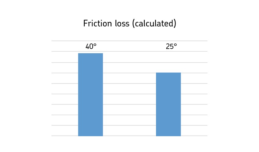 Kết quả tính toán từ việc so sánh góc tiếp xúc 25 ° với góc tiếp xúc 40 °.