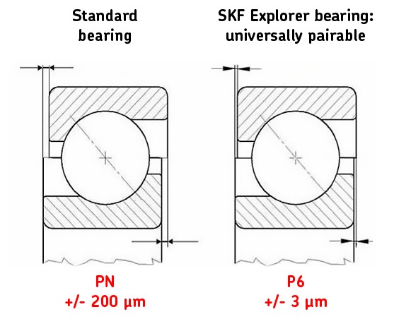 Để giảm chi phí lắp ráp, các ổ bi tiếp xúc góc xoay AC mới với góc tiếp xúc 25 ° đã có sẵn trong các phiên bản cặp phổ thông có thể điều khiển được theo loại SKF Explorer. Các lớp giải phóng mặt bằng tải trước và ổ đỡ khác nhau cũng có thể được thực hiện theo yêu cầu.