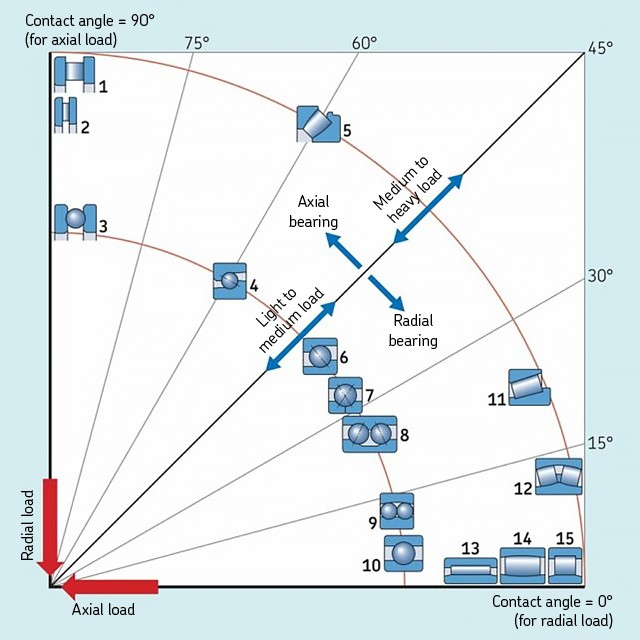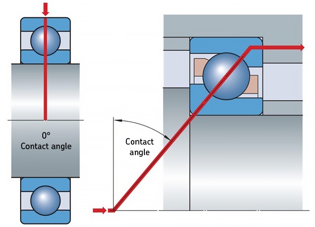 Mỗi ổ lăn có một góc tiếp xúc để truyền lực bên trong ổ trục. Ví dụ đơn giản nhất về điều này là một ổ bi rãnh sâu. Trong trường hợp này, góc tiếp xúc đối với tải hướng tâm thuần túy là 0 °. Trong khi đó, một ổ bi tiếp xúc góc luôn có góc tiếp xúc lớn hơn 0°.