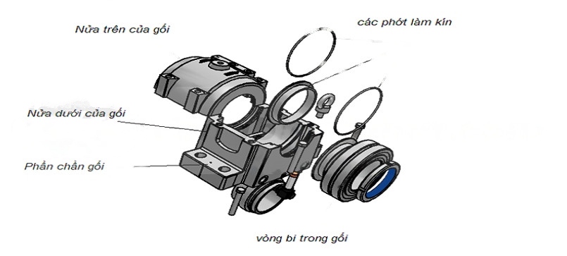 Vỏ gối được chia làm 2 phần và được bắt chặt với nhau bằng 4 bu lông.
