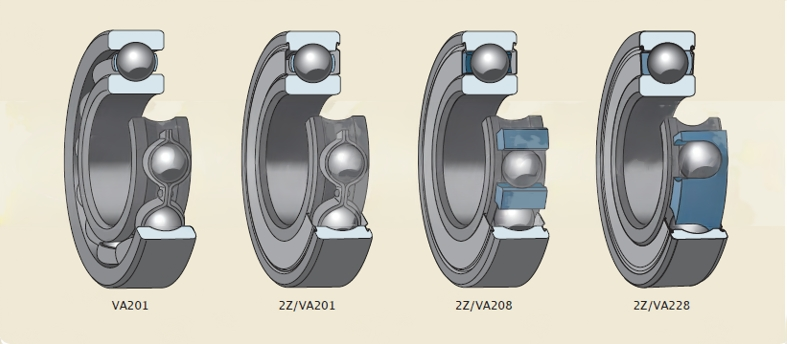 Nắp che để ngăn không cho dị vật cứng lọt vào bên trong vòng bi. Nắp che của kiểu 2Z/VA201 cho khả năng tra một lượng mỡ polyalkylene glycol/graphite nhiều gấp đôi so với loại VA201 không có nắp che.